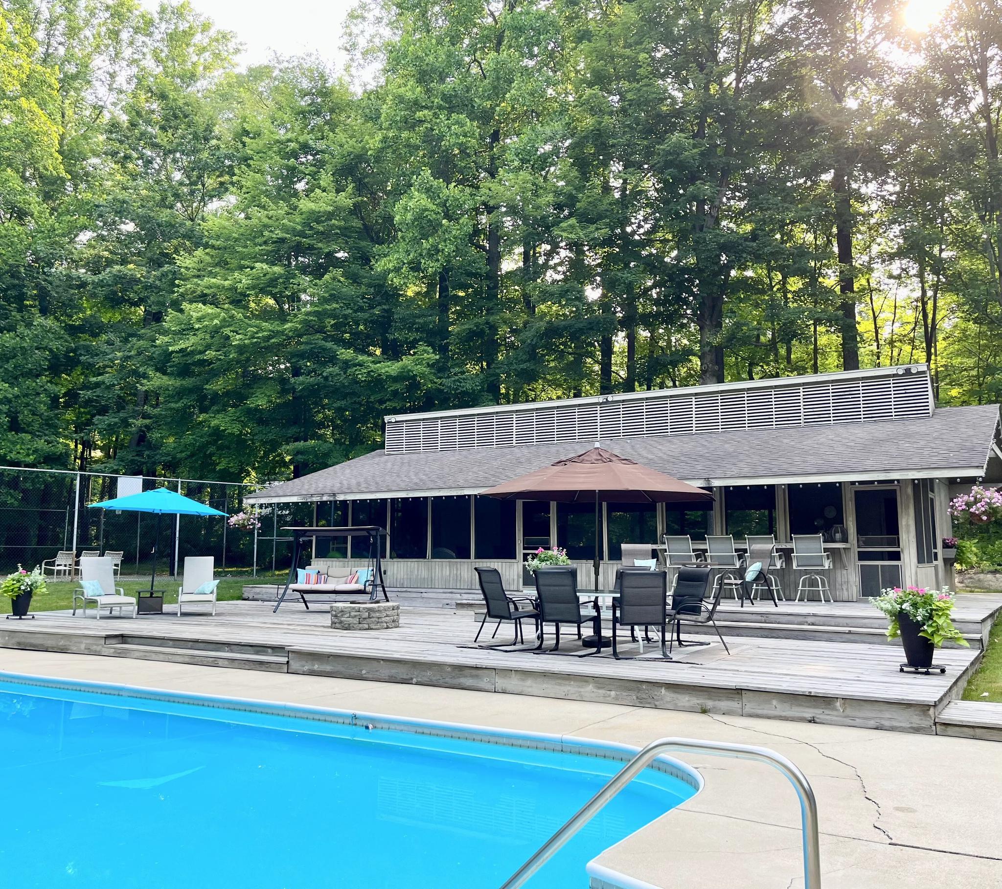Get into NATURE, Michiana! You will love this amazing, peaceful 10 acre parcel on the south side of South Bend. Gorgeous landscaping welcomes you to the property, as you follow the drive behind the house to enter the "playground." Enormous decks flank the in-ground pool, with your own camp sized screened porch for parties and entertainment, regardless of the weather. The porch includes a full bath with shower, to keep swimmers from tracking into the house, and a mini fridge in the bar area, so parties are a breeze. The tennis court is great, and boasts basketball goals on either end, too. And what if you wanted to convert to pickleball? Opportunities are endless. And behind the tennis court, find the acres of woods for trail hiking, snowmobiling, hunting or more. But wait, go inside to find four bedrooms, three and a half baths, beautiful living spaces and more. There's even a generator, in case of any electrical breach. Pictures and video really just cannot do justice to this amazing homestead. And while you feel so remote in the country setting, shopping, schools, restaurants and more are just minutes away. Don't wait to come see this fabulous property for yourself, because this country dream is ALL ABOUT YOU!